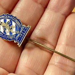 Mærke 1925 i Walkershofen, hvidmetal. 4x3cm på nål og stofroset.