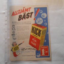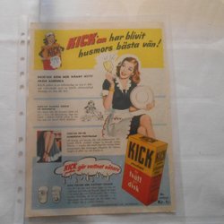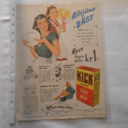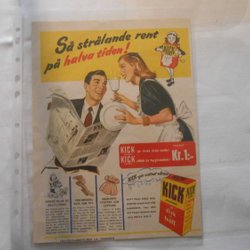 KICK disk vaskemiddel helsidesannonce 1950'erne – husholdning, retro, hum