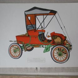 Maleri/plade/tryk, veteranbil/Rambler 1902 ca 30x42 cm