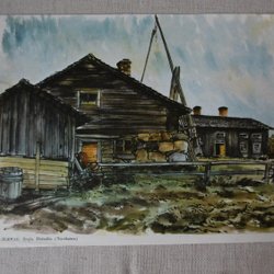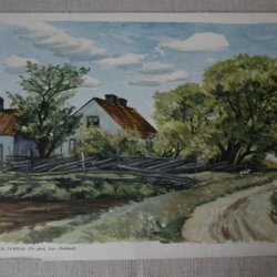 Maleri/planch/print, Eigil Schwab/Fie gård, Lau/Gotland ca 22x30 cm