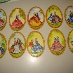 - Handmålade bokmärken som avbildar tidens konstnärliga tendenser.