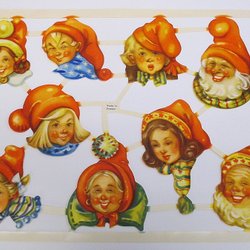 Kort med bogmærke nisser, Made in Sweden, retro vintage fra 1940-50'erne
