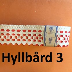 HYLDESTRIM 3. Rød oval.1940-50t.Bogmærkepræget.4cmx5m hyldekant.