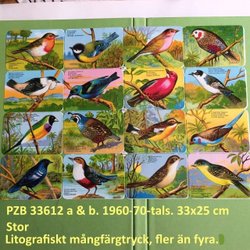 PZB 33612 a&b: 16 fugle, 4 sprog. HEL-kortbogmærker. 1960'erne. 33x24 cm