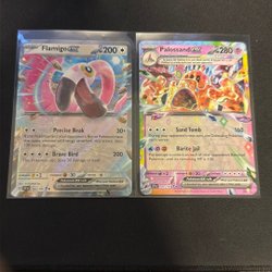 Pokemonkort Flamigo ex og Palossand ex