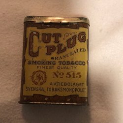 Ældre blikdåse King's blend med Sthlms slot. Det svenske tobaksmonopol.