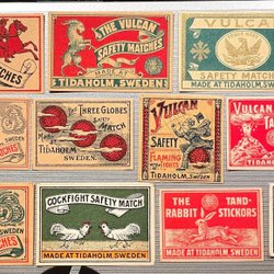 Gamle etiketter til Svenska tændstikæsker.