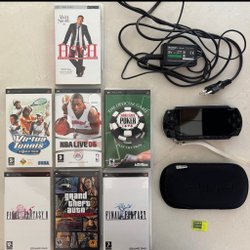PSP 2001 - Två handkonsoler med 6 spel och ett fodral