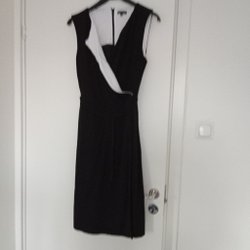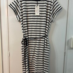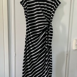 Ny Sort- og hvidstribet kjole med bindebånd, str. XL