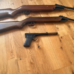 To luftgeværer og en pistol sælges i en pakke