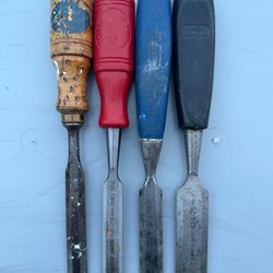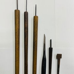 Sendes fra Japan 6 stk japansk vintage kiri/punsel + mejsel – træbearbejdning – patina