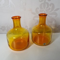 To flasker / vaser gule rød- orange glas fra Rieijmyre Sweden