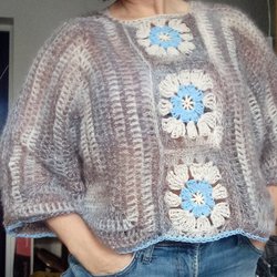 HANTVERK Cool hæklet "sky" trøje i grå/blå farver - størrelse S/M/L - helt ny!