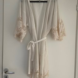 Hvid kimono, størrelse S/M blonde romantisk sexet dame knyt morgenkåbe cozy LUX