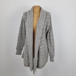 Women's Gray 100% Cashmere Long Open Front Cardigan ! size L
