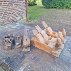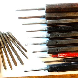 Samling gamle mejsler med tilbehør