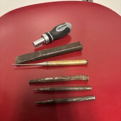 Værktøjssæt med mejsel, dorn og sømudtrækker