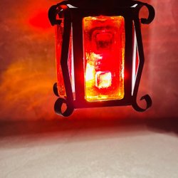 Orientalisk fönster/taklampa i mässing.aklampa i mässing med färgat glas