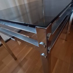 Sidebord glasplade med kromben