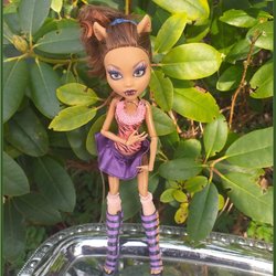 Monster High dukke stemplet 2015 lilla hårløkke Mattel Fin stand