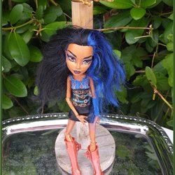 Monster High dukke stemplet 2011 blå sort hår med børste Mattel God stand
