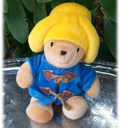 Paddington blødt legetøj i blå frakke og gul hat Eden Toys