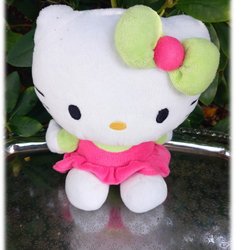 Dejlige Hello Kitty med sin pink-grønne kjole Label falmede sandsynligvis San