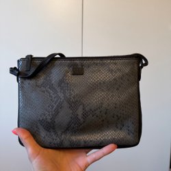 Grå/hvid håndtaske, slangeskindsimitation