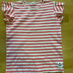 Mini Rodini stribet lyserød/hvid t-shirt med sommerfugleærme, størrelse 140/146