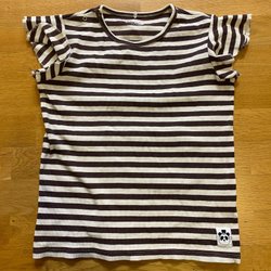 Mini Rodini stribet brun/hvid t-shirt med sommerfugleærme, størrelse 140/146