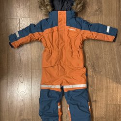 Didriksons orange/blå overall, størrelse 80