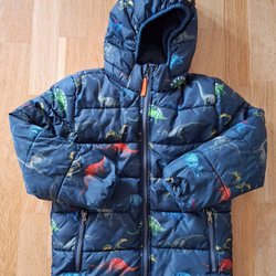 H&M vinterjakke mørkeblå med dinosaurer med aftagelig hætte str. 128 cm (7-8 år)