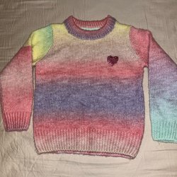 Strikket trøje med glitterhjerte, størrelse 116.