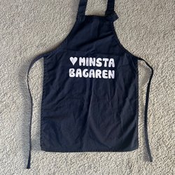 Børneforklæde mørkeblåt med teksten ”Minsta bagaren”