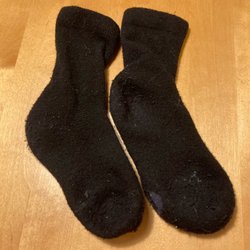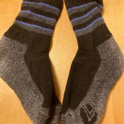 Grå, sorte, blå uldstrømper