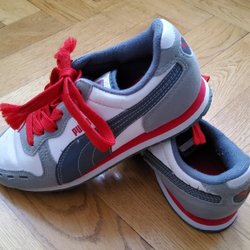 Puma træningssko, grå/hvid/rød størrelse 33, i god stand!