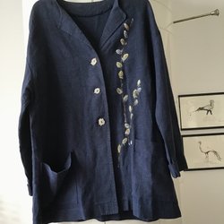Kavaj/jakke i hør med tryk mørk blå str. XL-XXL læs mål!