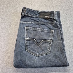 Diesel jeans med knaplukning Størrelse W 34 L 32 Larkee slid forneden på benene og ved gylp