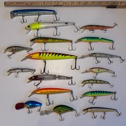 Samling af retro Wobblers og diverse tilbehør
