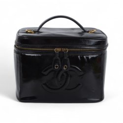 Chanel Vanity Taske CC Logo Vintage Patent Læder Sort Emalje Make Up Box