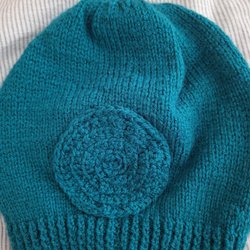 Fin Mössa Petrolblå Akrylgarn -Hemstickad!