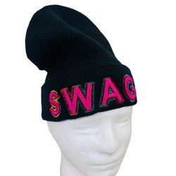 SWAG Broderet Beanie Hat Sort Rosa Voksen Onesize