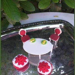 Dukkehus møbler borde plader rokoko stole puf safran boller