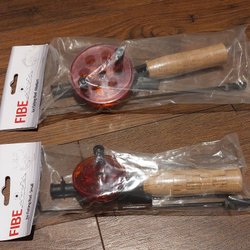 Ældre isfiskestang i træ, kork og metal