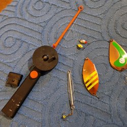 Vintage Ice Jigging Rod med lokke - Retro - Fiskeri - Fiskelokke - Vinterfiskeri