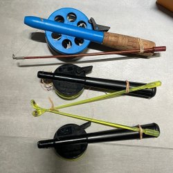 Tre hjemmelavede isfiskestænger vintage
