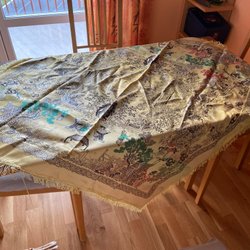 Borddug med østasiatisk motiv, ca. 115*115 cm