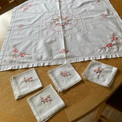 Broderet bomuldsklæde med fire (4) servietter klæde i 100 % bomuld
