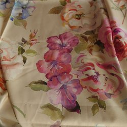 Smukt stof med dompap og roser