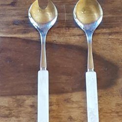 Salatbestik / ske og gaffel med hvidt plasthåndtag